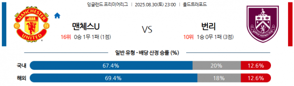 8월 30일 EPL 맨체스터 유나이티드 vs 번리 경기 분석 및 예측