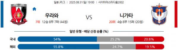 08월31일 19:00 J리그1 우라와 vs 니가타 경기 분석