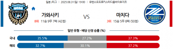 08월31일 19:00 J리그1 가와사키 vs 마치다 경기 분석