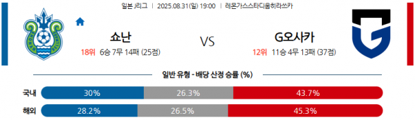 08월31일 19:00 J리그1 쇼난 vs 감바 오사카 경기 분석