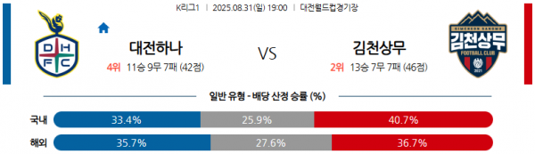 08월31일 19:00 K리그1 대전 vs 김천 경기 분석