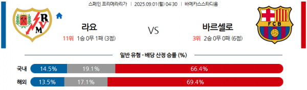 09월01일 04:30 라리가 라요 vs 바르셀로나 경기 분석
