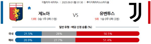 09월01일 01:30 세리에 제노아 vs 유벤투스 경기 분석
