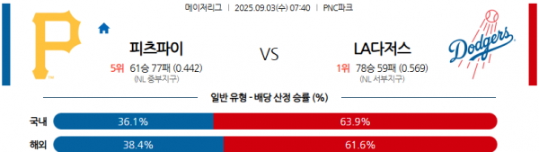 09월03일 07:40 MLB 피츠버그 파이어리츠 vs LA 다저스