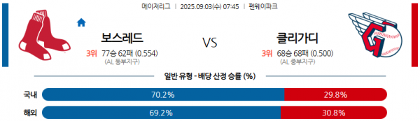 09월03일 07:45 MLB 보스턴 레드삭스 vs 클리블랜드 가디언즈
