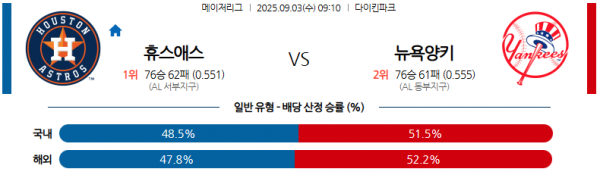 09월03일 09:10 MLB 휴스턴 애스트로스 vs 뉴욕 양키스