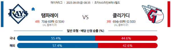 09월05일 08:35 MLB 탬파베이 레이스 vs 클리블랜드 가디언즈 경기 분석