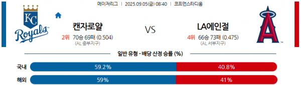 09월05일 08:40 MLB 캔자스시티 로얄스 vs LA 에인절스 경기 분석