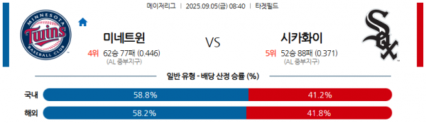 09월05일 08:40 MLB 미네소타 트윈스 vs 시카고 화이트삭스 경기 분석