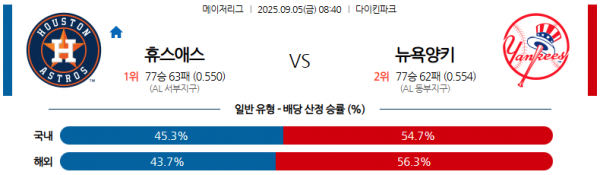 반면, 뉴욕 양키스는 불펜의 불안정함이 큰 변수로 작용할 수 있으며, 후반 강한 휴스턴이 승리를 가져갈 것으로 예상됩니다.