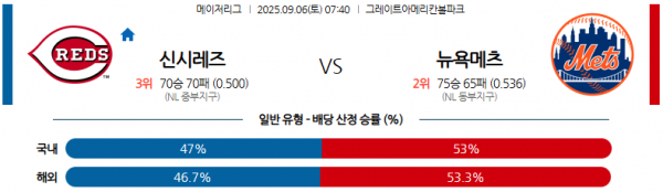 09월06일 07:40 MLB 신시내티 레즈 vs 뉴욕 메츠 경기 분석