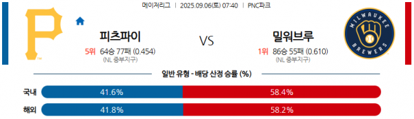 09월06일 07:40 MLB 피츠버그 파이리츠 vs 밀워키 브루어스 경기 분석