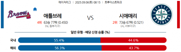 09월06일 08:15 MLB 애틀랜타 브레이브스 vs 시애틀 매리너스 경기 분석