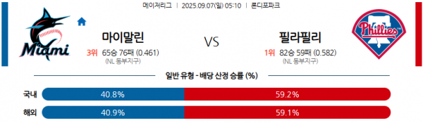 09월07일 05:10 MLB 마이애미 말린스 vs 필라델피아 필리스 경기 분석