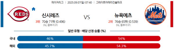 09월07일 07:40 MLB 신시내티 레즈 vs 뉴욕 메츠 경기 분석