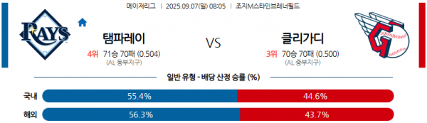 클리블랜드의 타선은 최근 상승세를 타고 있으며, 탬파베이는 타선의 부진이 심각합니다.