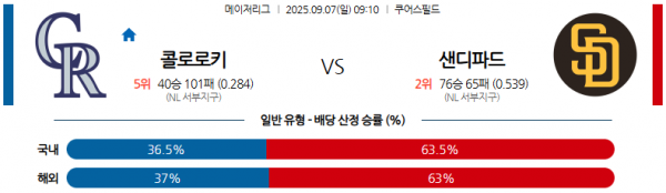 09월07일 09:10 MLB 콜로라도 로키스 vs 샌디에고 파드레스 경기 분석