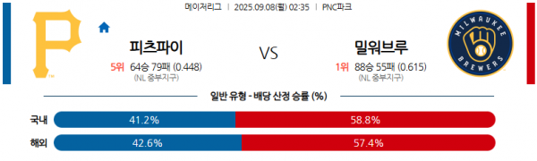 09월 08일 02:35 MLB 피츠버그 파이어리츠 vs 밀워키 브루어스 경기 분석