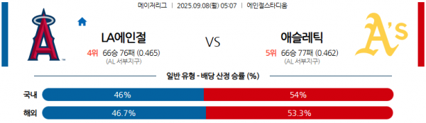 09월 08일 05:07 MLB LA에인절스 vs 애슬레틱스 경기 분석