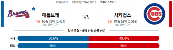 09월 10일 08:15 MLB 애틀랜타 브레이브스 vs 시카고 컵스 경기 분석
