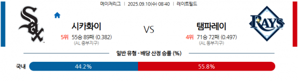 09월 10일 08:40 MLB 시카고 화이트삭스 vs 템파베이 레이스 경기 분석