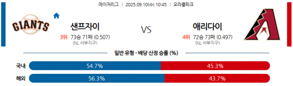 09월 10일 10:45 MLB 샌프란시스코 자이언츠 vs 애리조나 다이아몬드백스 경기 분석