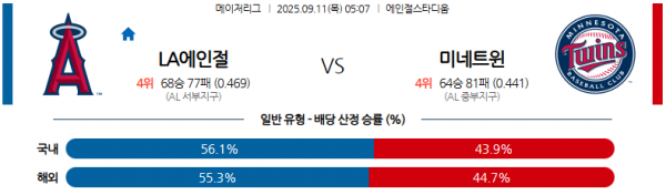 09월 11일 05:07 MLB LA에인절스 vs 미네소타 트윈스 경기 분석