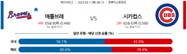 09월 11일 08:15 MLB 애틀랜타 브레이브스 vs 시카고 컵스 경기 분석