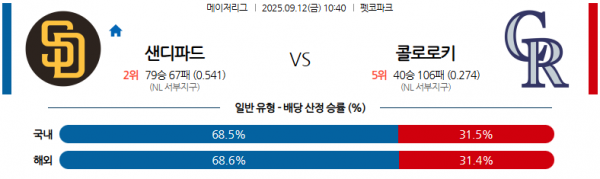 09월 12일 10:40 MLB 샌디에고 파드레스 vs 콜로라도 로키스 경기 분석