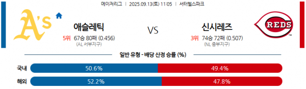 09월 13일 11:05 MLB 애슬레틱스 vs 신시내티 레즈 경기 분석