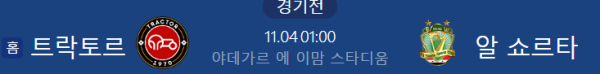 11월04일 01:00 AFC챔스 트락토르 사지FC vs 알 쇼르타 분석
