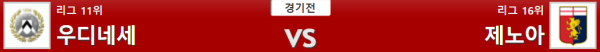 우디네세 칼초 vs 제노아CFC [세리에A] 12월09일 02:00