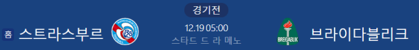 스트라스부르 vs 브라이다블릭 [컨퍼런스] 12월19일 05:00