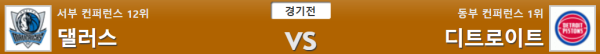 댈러스 vs 디트로이트 [NBA] 12월19일 10:30