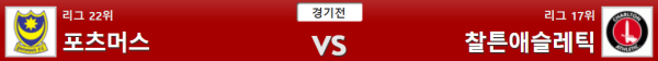 포츠머스 vs 찰튼에슬레틱 [챔피언쉽] 12월30일 04:45