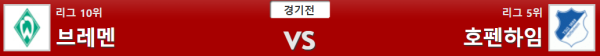 브레멘 vs 호펜하임 [분데스리가] 01월10일 23:30