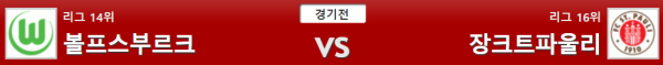 볼프스부르크 vs 장크트파울리 [분데스리가] 01월15일 02:30
