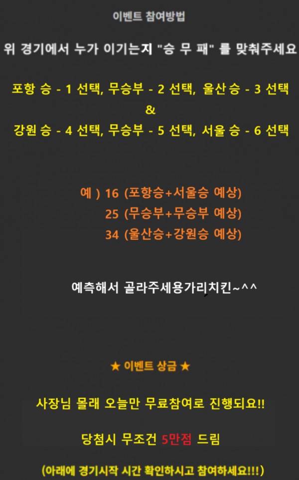 ★오늘만 무료참여 머니이벤트★ 09월 13일 19:00 K리그1 두경기 승무패를 맞춰주세요!!! 작성자 정보 진프로쪽지보내기 메일보내기 자기소개 아이디로 검색 전체게시물쪽지보내기 메일보내기 자기소개 아이디로 검색 전체게시물 작성 작성일 2025.09.11 23:08 컨텐츠 정보 이벤트 참가자 : 40 댓글 조회수 : 401 조회 목록 관리 글검색 본문 회원 가입 후 참여해주세영~ 이벤트 참여할 수 있는 권한이 없습니다. 이벤트 참여자 40 명 진프로님의 댓글 미당첨 진프로쪽지보내기 메일보내기 자기소개 아이디로 검색 전체게시물쪽지보내기 메일보내기 자기소개 아이디로 검색 전체게시물 작성일 2025.09.11 23:16 35 35 곤이님의 댓글 미당첨 곤이쪽지보내기 메일보내기 자기소개 아이디로 검색 전체게시물쪽지보내기 메일보내기 자기소개 아이디로 검색 전체게시물 작성일 2025.09.12 00:34 14 14 길버님의 댓글 미당첨 길버쪽지보내기 메일보내기 자기소개 아이디로 검색 전체게시물쪽지보내기 메일보내기 자기소개 아이디로 검색 전체게시물 작성일 2025.09.12 01:38 14 14 롱다리님의 댓글 미당첨 롱다리쪽지보내기 메일보내기 자기소개 아이디로 검색 전체게시물쪽지보내기 메일보내기 자기소개 아이디로 검색 전체게시물 작성일 2025.09.12 01:43 15 15 컨시드님의 댓글 미당첨 컨시드쪽지보내기 메일보내기 자기소개 아이디로 검색 전체게시물쪽지보내기 메일보내기 자기소개 아이디로 검색 전체게시물 작성일 2025.09.12 01:49 14 14 tsla님의 댓글 미당첨 tsla쪽지보내기 메일보내기 자기소개 아이디로 검색 전체게시물쪽지보내기 메일보내기 자기소개 아이디로 검색 전체게시물 작성일 2025.09.12 02:50 15 15 삼육대님의 댓글 미당첨 삼육대쪽지보내기 메일보내기 자기소개 아이디로 검색 전체게시물쪽지보내기 메일보내기 자기소개 아이디로 검색 전체게시물 작성일 2025.09.12 08:14 16 16 짭스님의 댓글 미당첨 짭스쪽지보내기 메일보내기 자기소개 아이디로 검색 전체게시물쪽지보내기 메일보내기 자기소개 아이디로 검색 전체게시물 작성일 2025.09.12 08:16 15 15 데굴데굴님의 댓글 미당첨 데굴데굴쪽지보내기 메일보내기 자기소개 아이디로 검색 전체게시물쪽지보내기 메일보내기 자기소개 아이디로 검색 전체게시물 작성일 2025.09.12 08:37 16 16 spotv2024님의 댓글 미당첨 spotv2024쪽지보내기 메일보내기 자기소개 아이디로 검색 전체게시물쪽지보내기 메일보내기 자기소개 아이디로 검색 전체게시물 작성일 2025.09.12 08:43 25 25 토야님의 댓글 미당첨 토야쪽지보내기 메일보내기 자기소개 아이디로 검색 전체게시물쪽지보내기 메일보내기 자기소개 아이디로 검색 전체게시물 작성일 2025.09.12 09:53 25 25 발야구님의 댓글 미당첨 발야구쪽지보내기 메일보내기 자기소개 아이디로 검색 전체게시물쪽지보내기 메일보내기 자기소개 아이디로 검색 전체게시물 작성일 2025.09.12 11:43 1 1 dannycap님의 댓글 미당첨 dannycap쪽지보내기 메일보내기 자기소개 아이디로 검색 전체게시물쪽지보내기 메일보내기 자기소개 아이디로 검색 전체게시물 작성일 2025.09.12 12:29 16 16 이글스님의 댓글 미당첨 이글스쪽지보내기 메일보내기 자기소개 아이디로 검색 전체게시물쪽지보내기 메일보내기 자기소개 아이디로 검색 전체게시물 작성일 2025.09.12 12:38 1 1 아몰랑님의 댓글 미당첨 아몰랑쪽지보내기 메일보내기 자기소개 아이디로 검색 전체게시물쪽지보내기 메일보내기 자기소개 아이디로 검색 전체게시물 작성일 2025.09.12 14:17 36 36 마레뿌드레님의 댓글 미당첨 마레뿌드레쪽지보내기 메일보내기 자기소개 아이디로 검색 전체게시물쪽지보내기 메일보내기 자기소개 아이디로 검색 전체게시물 작성일 2025.09.12 15:14 14 14 한스님의 댓글 미당첨 한스쪽지보내기 메일보내기 자기소개 아이디로 검색 전체게시물쪽지보내기 메일보내기 자기소개 아이디로 검색 전체게시물 작성일 2025.09.12 15:30 16 16 한번만먹자님의 댓글 미당첨 한번만먹자쪽지보내기 메일보내기 자기소개 아이디로 검색 전체게시물쪽지보내기 메일보내기 자기소개 아이디로 검색 전체게시물 작성일 2025.09.12 15:45 15 15 엔드게임님의 댓글 미당첨 엔드게임쪽지보내기 메일보내기 자기소개 아이디로 검색 전체게시물쪽지보내기 메일보내기 자기소개 아이디로 검색 전체게시물 작성일 2025.09.12 16:58 15 15 에이치님의 댓글 미당첨 에이치쪽지보내기 메일보내기 자기소개 아이디로 검색 전체게시물쪽지보내기 메일보내기 자기소개 아이디로 검색 전체게시물 작성일 2025.09.12 17:02 15 15 람이님의 댓글 미당첨 람이쪽지보내기 메일보내기 자기소개 아이디로 검색 전체게시물쪽지보내기 메일보내기 자기소개 아이디로 검색 전체게시물 작성일 2025.09.12 17:06 14 14 빵빵님의 댓글 미당첨 빵빵쪽지보내기 메일보내기 자기소개 아이디로 검색 전체게시물쪽지보내기 메일보내기 자기소개 아이디로 검색 전체게시물 작성일 2025.09.12 17:59 14 14 보스톤님의 댓글 미당첨 보스톤쪽지보내기 메일보내기 자기소개 아이디로 검색 전체게시물쪽지보내기 메일보내기 자기소개 아이디로 검색 전체게시물 작성일 2025.09.12 18:37 14 14 테슬라밈님의 댓글 미당첨 