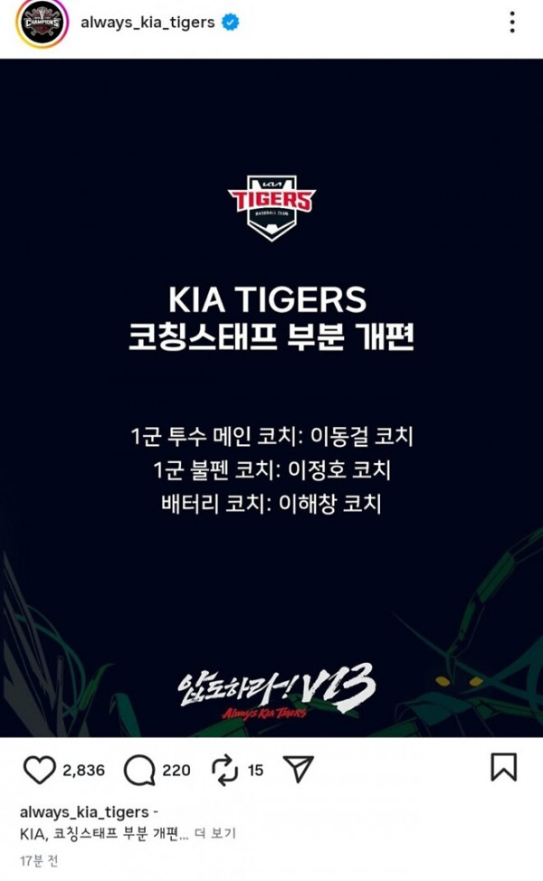 기아코치진 개편 작성자 정보 삼육대쪽지보내기 메일보내기 자기소개 아이디로 검색 전체게시물쪽지보내기 메일보내기 자기소개 아이디로 검색 전체게시물 작성 작성일 2025.08.11 22:01 컨텐츠 정보 269 조회 5 댓글 목록 관리 글검색 본문 반등 의 계기가 되길 SNS 공유 신고 삼육대쪽지보내기 메일보내기 자기소개 아이디로 검색 전체게시물쪽지보내기 메일보내기 자기소개 아이디로 검색 전체게시물 레벨 17 91% 등록일 10.03 고화질 맞나요? 댓글 3 등록일 2025.09.28 초6키가 2미터5센티 댓글 2 등록일 2025.09.28 여의도 불꽃축제 댓글 2 등록일 2025.09.21 2시 야구 댓글 5 관련자료 댓글 5 야말고고님의 댓글 야말고고쪽지보내기 메일보내기 자기소개 아이디로 검색 전체게시물쪽지보내기 메일보내기 자기소개 아이디로 검색 전체게시물 작성일 2025.08.12 00:35 와우.. sns에 올리네요. 신고 와우.. sns에 올리네요. 여시사랑님의 댓글 여시사랑쪽지보내기 메일보내기 자기소개 아이디로 검색 전체게시물쪽지보내기 메일보내기 자기소개 아이디로 검색 전체게시물 작성일 2025.08.12 05:21 신고 {emo:onion-070.gif:50} sulaksan님의 댓글 sulaksan쪽지보내기 메일보내기 자기소개 아이디로 검색 전체게시물쪽지보내기 메일보내기 자기소개 아이디로 검색 전체게시물 작성일 2025.08.12 07:43 기아는 올해 물건너 갔음 신고 기아는 올해 물건너 갔음 여시사랑님의 댓글의 댓글 여시사랑쪽지보내기 메일보내기 자기소개 아이디로 검색 전체게시물쪽지보내기 메일보내기 자기소개 아이디로 검색 전체게시물 작성일 2025.08.13 04:40 김도영 아웃되고 부터 영 그렇습니다~~~!! 신고 김도영 아웃되고 부터 영 그렇습니다~~~!!{emo:onion-149.gif:50} 호돌이님의 댓글 호돌이쪽지보내기 메일보내기 자기소개 아이디로 검색 전체게시물쪽지보내기 메일보내기 자기소개 아이디로 검색 전체게시물 작성일 2025.08.13 05:32 코치진도 바꾸고 이제 앞으로 나아가야겠지요.. 신고 코치진도 바꾸고 이제 앞으로 나아가야겠지요.. 로그인한 회원만 댓글 등록이 가능합니다. 목록 관리 글검색