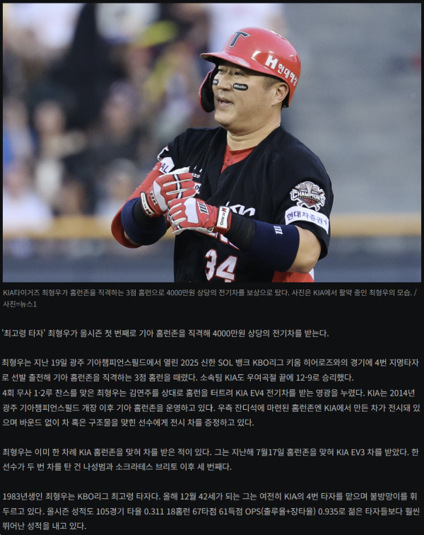 최형우, 홈런존 직격… 4000만원 차 받는다