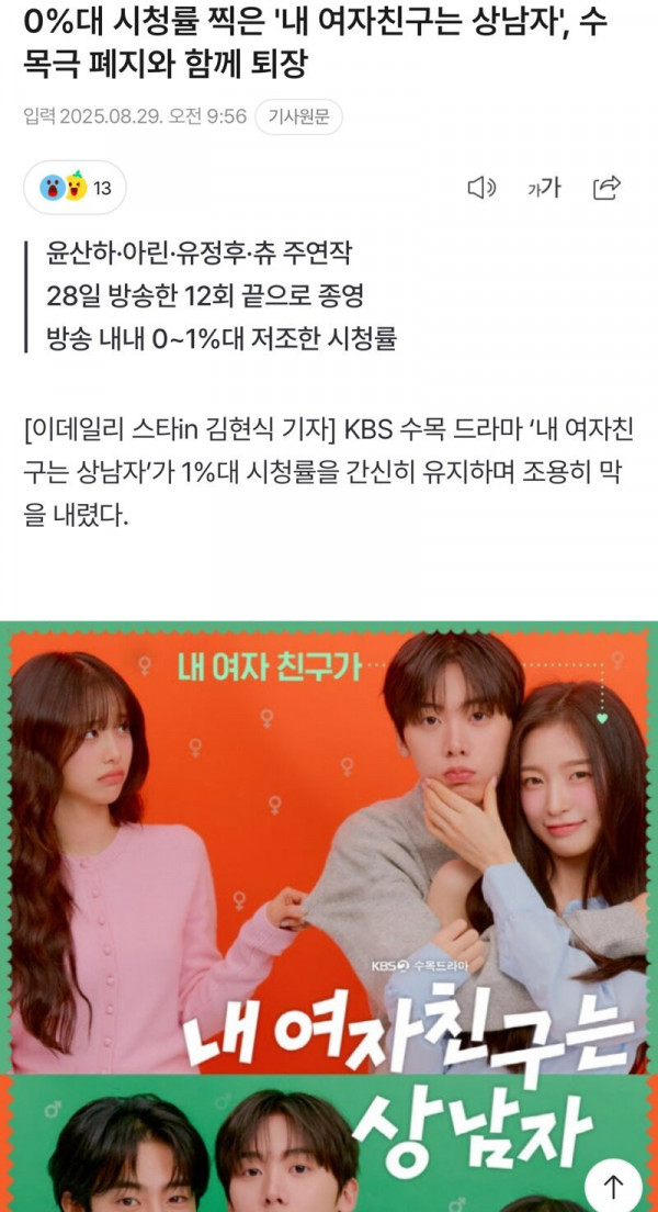 아이돌 내세우고 시청률 0프로대 찍고 퇴장한 드라마