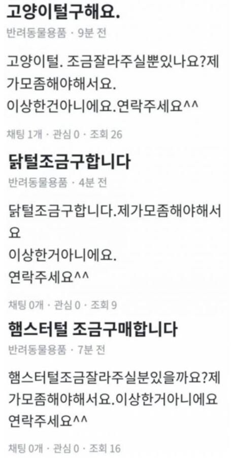 호돌이님의 댓글 호돌이쪽지보내기 메일보내기 자기소개 아이디로 검색 전체게시물쪽지보내기 메일보내기 자기소개 아이디로 검색 전체게시물 작성일 2025.09.22 00:03 동물털을 모아서 무엇에쓸려고?? 신고 동물털을 모아서 무엇에쓸려고??