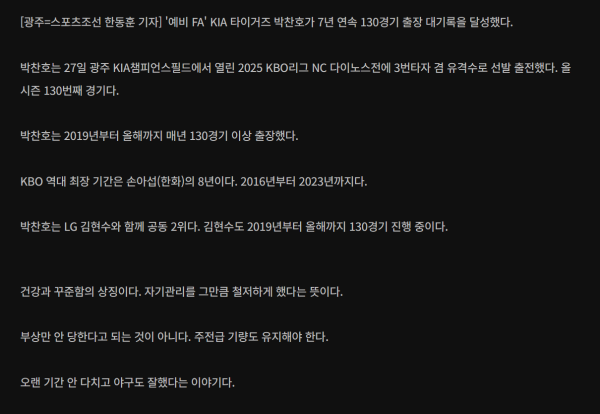 절대 안 고장나는 '예비 FA' 박찬호! 7년 연속 130경기 금자탑! 작성자 정보 여시사랑쪽지보내기 메일보내기 자기소개 아이디로 검색 전체게시물쪽지보내기 메일보내기 자기소개 아이디로 검색 전체게시물 작성 작성일 2025.09.27 20:17 컨텐츠 정보 152 조회 2 댓글 목록 본문 KBO 역대 '공동 2위' SNS 공유 신고 여시사랑쪽지보내기 메일보내기 자기소개 아이디로 검색 전체게시물쪽지보내기 메일보내기 자기소개 아이디로 검색 전체게시물 레벨 24 94% 등록일 04:56 일본에서 ㅈ같다고 소문난 동네 댓글 1 등록일 10.13 캄보디아 공중 쓰레기통에서 나온것들 댓글 3 등록일 10.11 콘돔 무료나눔 참사 댓글 4 등록일 10.09 진짜 조상 잘 만나면~~!! 댓글 6 관련자료 댓글 2 여시사랑님의 댓글 여시사랑쪽지보내기 메일보내기 자기소개 아이디로 검색 전체게시물쪽지보내기 메일보내기 자기소개 아이디로 검색 전체게시물 작성일 2025.09.27 20:18 kia에서 계속 안아프고 야구허자~~!! 신고 kia에서 계속 안아프고 야구허자~~!!{emo:onion-025.gif:50} 발야구님의 댓글 발야구쪽지보내기 메일보내기 자기소개 아이디로 검색 전체게시물쪽지보내기 메일보내기 자기소개 아이디로 검색 전체게시물 작성일 2025.09.27 20:22 고군분투한 박찬호에게 박수를~~ 신고 고군분투한 박찬호에게 박수를~~ 로그인한 회원만 댓글 등록이 가능합니다. 목록