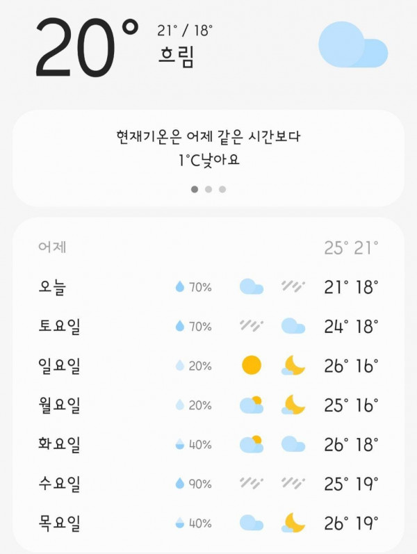 이번주 날씨 근황 작성자 정보 012oppaㅡ문스타쪽지보내기 메일보내기 자기소개 아이디로 검색 전체게시물쪽지보내기 메일보내기 자기소개 아이디로 검색 전체게시물 작성 작성일 2025.09.29 08:47 컨텐츠 정보 195 조회 4 댓글 목록 본문 ㄹ SNS 공유 신고 012oppaㅡ문스타쪽지보내기 메일보내기 자기소개 아이디로 검색 전체게시물쪽지보내기 메일보내기 자기소개 아이디로 검색 전체게시물 레벨 27 94% 등록일 10.13 삶이 나아지는 5가지 방법 댓글 2 등록일 10.13 혼자인 순간들을 견디는 방법 댓글 1 등록일 10.13 어느 아파트 18층 사는 초딩 등록일 10.12 디시 교정갤 치열 레전드 댓글 1 관련자료 댓글 4 012oppaㅡ문스타님의 댓글 012oppaㅡ문스타쪽지보내기 메일보내기 자기소개 아이디로 검색 전체게시물쪽지보내기 메일보내기 자기소개 아이디로 검색 전체게시물 작성일 2025.09.29 08:47 신고 {emo:onion-101.gif:50} 짭스님의 댓글 짭스쪽지보내기 메일보내기 자기소개 아이디로 검색 전체게시물쪽지보내기 메일보내기 자기소개 아이디로 검색 전체게시물 작성일 2025.09.29 10:19 아침은 좀 쌀쌀합디다!ㅡㅡ 신고 아침은 좀 쌀쌀합디다!ㅡㅡ 여시사랑님의 댓글 여시사랑쪽지보내기 메일보내기 자기소개 아이디로 검색 전체게시물쪽지보내기 메일보내기 자기소개 아이디로 검색 전체게시물 작성일 2025.09.29 11:49 새벽에 추워요~~!! 신고 새벽에 추워요~~!!{emo:onion-031.gif:50} 호돌이님의 댓글 호돌이쪽지보내기 메일보내기 자기소개 아이디로 검색 전체게시물쪽지보내기 메일보내기 자기소개 아이디로 검색 전체게시물 작성일 10.01 07:09 선선한 가을이 성큼 다가온듯.. 신고 선선한 가을이 성큼 다가온듯.. 로그인한 회원만 댓글 등록이 가능합니다. 목록