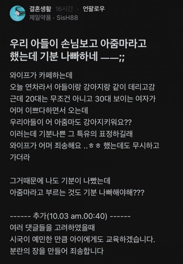 아기를 표독스럽게 노려보는 여자 ㄷㄷㄷㄷ 작성자 정보 012oppaㅡ문스타쪽지보내기 메일보내기 자기소개 아이디로 검색 전체게시물쪽지보내기 메일보내기 자기소개 아이디로 검색 전체게시물 작성 작성일 2025.10.10 10:49 컨텐츠 정보 118 조회 1 댓글 목록 본문 gf SNS 공유 신고 012oppaㅡ문스타쪽지보내기 메일보내기 자기소개 아이디로 검색 전체게시물쪽지보내기 메일보내기 자기소개 아이디로 검색 전체게시물 레벨 28 94% 등록일 10:49 수고하세요~ 댓글 1 등록일 10:48 핑계 댓글 1 등록일 10:47 취가 제일 심한 술 종류 댓글 1 등록일 10.14 50대 경찰이 10대 여중생 폭행 댓글 2 관련자료 댓글 1 012oppaㅡ문스타님의 댓글 012oppaㅡ문스타쪽지보내기 메일보내기 자기소개 아이디로 검색 전체게시물쪽지보내기 메일보내기 자기소개 아이디로 검색 전체게시물 작성일 10.10 10:49 신고 {emo:onion-087.gif:50} 로그인한 회원만 댓글 등록이 가능합니다. 목록
