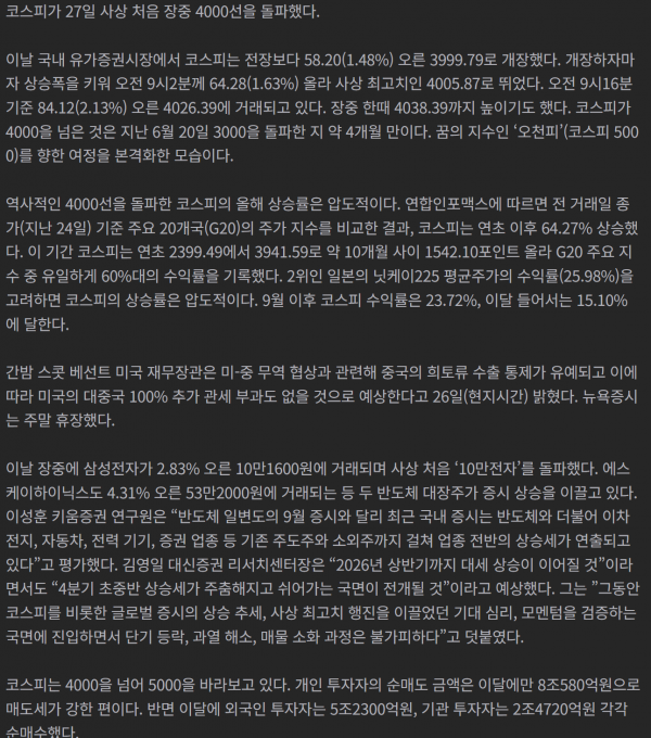 코스피, 4000 돌파… 작성자 정보 여시사랑쪽지보내기 메일보내기 자기소개 아이디로 검색 전체게시물쪽지보내기 메일보내기 자기소개 아이디로 검색 전체게시물 작성 작성일 2025.10.27 11:30 컨텐츠 정보 31 조회 4 댓글 목록 본문 삼성전자 ‘10만 전자’ 등극 SNS 공유 신고 여시사랑쪽지보내기 메일보내기 자기소개 아이디로 검색 전체게시물쪽지보내기 메일보내기 자기소개 아이디로 검색 전체게시물 레벨 29 97% 등록일 11:30 코스피, 4000 돌파… 댓글 4 등록일 08:42 차은우도 외모로 밀리는 상황 댓글 3 등록일 08:40 울릉도 근황 댓글 3 등록일 08:38 음란마귀 댓글 3 관련자료 댓글 4 여시사랑님의 댓글 여시사랑쪽지보내기 메일보내기 자기소개 아이디로 검색 전체게시물쪽지보내기 메일보내기 자기소개 아이디로 검색 전체게시물 작성일 11:31 신고 [https://365tvda.com/data/editor/2510/cmt_2109719509_jEXVHPRo_2f08a1da654068dba7dff699cf2cfd8837aabc2c.gif] akagaga님의 댓글 akagaga쪽지보내기 메일보내기 자기소개 아이디로 검색 전체게시물쪽지보내기 메일보내기 자기소개 아이디로 검색 전체게시물 작성일 11:34 ㅋㅋㅋㅋ드디어!오래걸렸다 신고 ㅋㅋㅋㅋ드디어!오래걸렸다 꽃미남쭌님의 댓글 꽃미남쭌쪽지보내기 메일보내기 자기소개 아이디로 검색 전체게시물쪽지보내기 메일보내기 자기소개 아이디로 검색 전체게시물 작성일 12:14 앞으로쭈~~욱 가자~~ 신고 앞으로쭈~~욱 가자~~ 앙마365님의 댓글 앙마365쪽지보내기 메일보내기 자기소개 아이디로 검색 전체게시물쪽지보내기 메일보내기 자기소개 아이디로 검색 전체게시물 작성일 13:09 신고 {emo:onion-043.gif:50} 로그인한 회원만 댓글 등록이 가능합니다. 목록