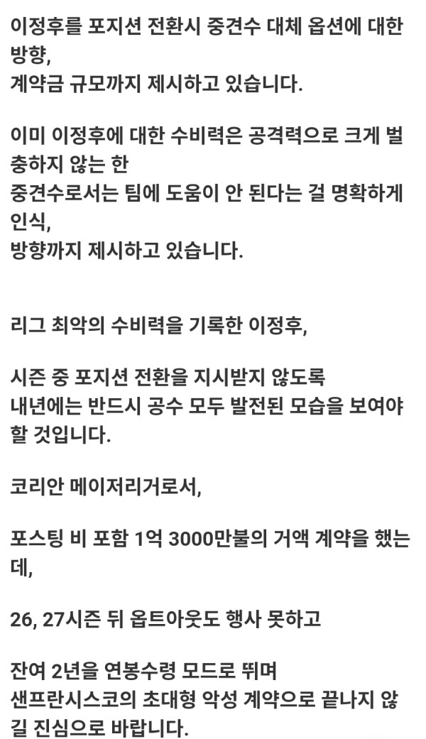 이정후 포지션 전환 본격 거론.. 작성자 정보 짭스쪽지보내기 자기소개 아이디로 검색 전체게시물쪽지보내기 자기소개 아이디로 검색 전체게시물 작성 작성일 2025.11.13 05:18 컨텐츠 정보 7 조회 1 댓글 목록 본문 KBO 에선 수비잘하는 이정후 아니었던가... SNS 공유 신고 짭스쪽지보내기 자기소개 아이디로 검색 전체게시물쪽지보내기 자기소개 아이디로 검색 전체게시물 레벨 96 100% 등록일 05:33 FA 썰 등록일 05:18 이정후 포지션 전환 본격 거론.. 댓글 1 등록일 02:49 저기요 가슴좀 만져도 될까요? 등록일 11.12 U17 대진표 32강 댓글 2 관련자료 댓글 1 발야구님의 댓글 발야구쪽지보내기 자기소개 아이디로 검색 전체게시물쪽지보내기 자기소개 아이디로 검색 전체게시물 작성일 06:50 정말 내년에는 본연의 이정후를 보여주길~~ 신고 정말 내년에는 본연의 이정후를 보여주길~~ 로그인한 회원만 댓글 등록이 가능합니다. 목록