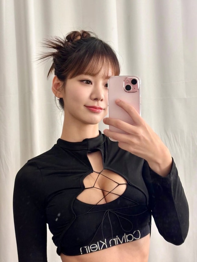 특히 가슴 라인을 따라 절개와 스트랩 디테일이 들어간 상의는 시크하면서도 대담한 분위기를 자아내며 시선을 집중시켰다. 헤어는 정돈된 업스타일로 연출해 얼굴형을 돋보이게 했고, 은은한 메이크업과 함께 맑은 피부결이 부각돼 전체적인 스타일의 완성도를 높였다.