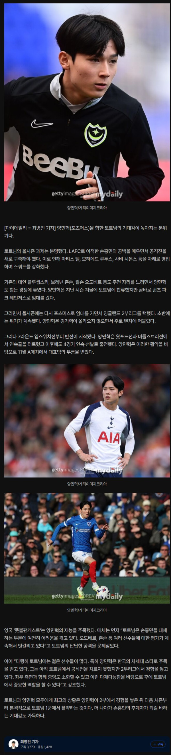 'YANG 미쳤다!' 진짜 ‘제2의 손흥민’으로 우뚝!...“양민혁, 토트넘 핵심 될 수 있어” 英 언론도 집중 조명→기대감 더 높아진다 작성자 정보 012oppaㅡ문스타쪽지보내기 자기소개 아이디로 검색 전체게시물쪽지보내기 자기소개 아이디로 검색 전체게시물 작성 작성일 2025.11.13 11:39 컨텐츠 정보 11 조회 4 댓글 목록 본문 s SNS 공유 신고 012oppaㅡ문스타쪽지보내기 자기소개 아이디로 검색 전체게시물쪽지보내기 자기소개 아이디로 검색 전체게시물 레벨 96 100% 등록일 11:39 'YANG 미쳤다!' 진짜 ‘제2의 손흥민’으로 우뚝!...“양민혁, 토트넘 핵심 될 수 있어” 英 언론도 집중 조명→기대감 더 높아진다 댓글 4 등록일 11:38 "분명히 말씀드리고 싶어" 대한민국 '캡틴 손흥민'의 이례적 호소...유럽 무대 복귀설 전면 부인 "저도 불편하고, 팬들도 혼란스러워" 댓글 2 등록일 11:37 "분명히 말씀드리고 싶어" 대한민국 '캡틴 손흥민'의 이례적 호소...유럽 무대 복귀설 전면 부인 "저도 불편하고, 팬들도 혼란스러워" 댓글 4 등록일 11.12 술자리예절) 매너다 vs 이건억지다 ??? 댓글 4 관련자료 댓글 4 012oppaㅡ문스타님의 댓글 012oppaㅡ문스타쪽지보내기 자기소개 아이디로 검색 전체게시물쪽지보내기 자기소개 아이디로 검색 전체게시물 작성일 11:39 신고 {emo:onion-046.gif:50} 클레타님의 댓글 클레타쪽지보내기 메일보내기 자기소개 아이디로 검색 전체게시물쪽지보내기 메일보내기 자기소개 아이디로 검색 전체게시물 작성일 11:42 양민혁 날아보자~~ 신고 양민혁 날아보자~~ 발야구님의 댓글 발야구쪽지보내기 자기소개 아이디로 검색 전체게시물쪽지보내기 자기소개 아이디로 검색 전체게시물 작성일 11:50 양민혁, 요즘 폼 좋아요!!! 신고 양민혁, 요즘 폼 좋아요!!! 앙마365님의 댓글 앙마365쪽지보내기 자기소개 아이디로 검색 전체게시물쪽지보내기 자기소개 아이디로 검색 전체게시물 작성일 12:49 토트넘이 양민혁을 키운다고??? 말이 안되지.. ㅋㅋㅋㅋ 신고 토트넘이 양민혁을 키운다고??? 말이 안되지.. ㅋㅋㅋㅋ 로그인한 회원만 댓글 등록이 가능합니다. 목록