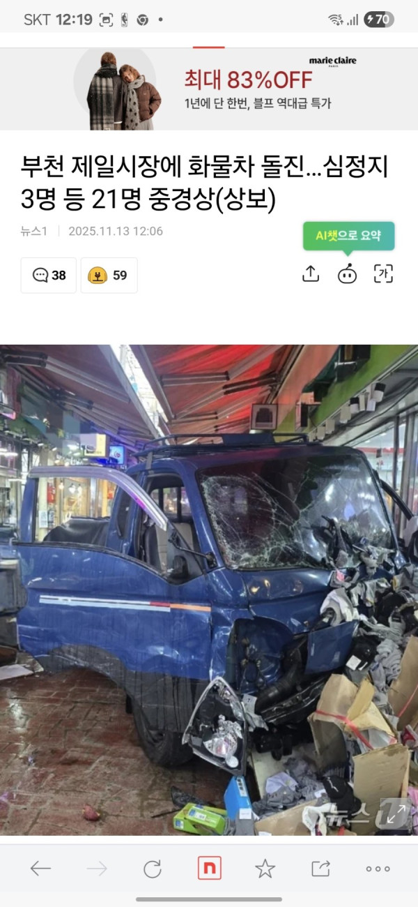 부천 제일시장 트럭 오조작사고 작성자 정보 짭스쪽지보내기 자기소개 아이디로 검색 전체게시물쪽지보내기 자기소개 아이디로 검색 전체게시물 작성 작성일 2025.11.14 09:08 컨텐츠 정보 15 조회 목록 본문 아이고... 두분 피할겨른없이 두분 사망하셧다네요.. 가해자는 60세이상으로 해당시장 상인이라고하고요.ㅜ SNS 공유 신고 짭스쪽지보내기 자기소개 아이디로 검색 전체게시물쪽지보내기 자기소개 아이디로 검색 전체게시물 레벨 96 100% 등록일 09:56 2025 NL MVP 오타니 댓글 1 등록일 09:20 박찬호는 두산확정 인듯? 댓글 3 등록일 09:17 불금엔 전신마사지! 등록일 09:08 부천 제일시장 트럭 오조작사고 관련자료 댓글 0 등록된 댓글이 없습니다. 로그인한 회원만 댓글 등록이 가능합니다. 목록